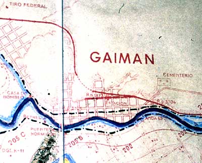 This extract from a land-holding or 'chacra' map, shows how the line originally came in from Trelew (right) and terminated along the line of the street. However the later extension to Dolavon required that the curve into the new tunnel begin east of the station building (though maybe not as far east as this suggests).