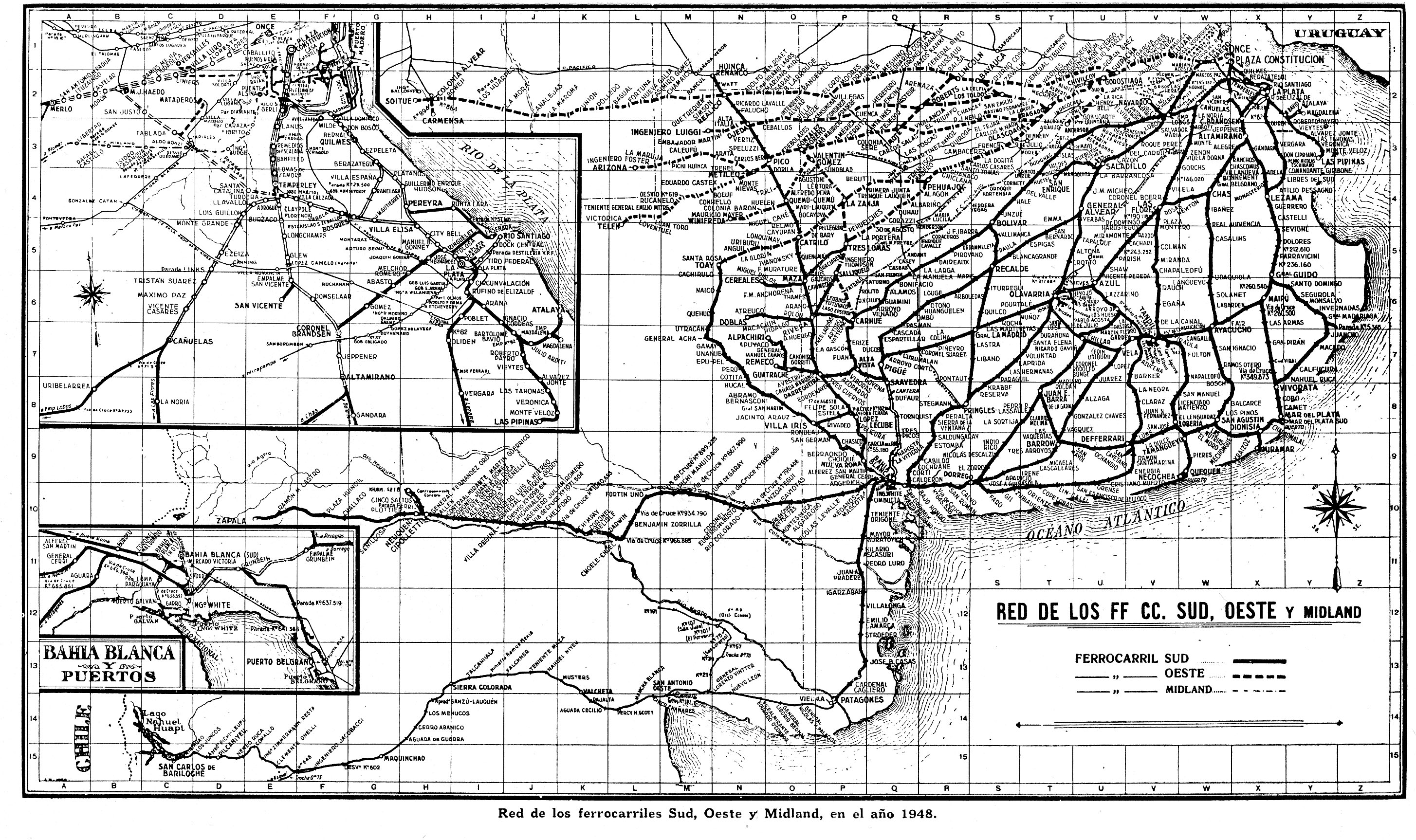 Appendix 13 Map of the Buenos Aires Great Southern Railway system A simplified version is shown first, followed by a much larger and more detailed map dating from the 1950s. This latter map is a very large file and will require some time to
