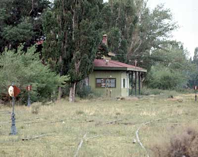 The line reached Sarmiento between Lakes Colhue Huapi and Musters in 1914. Whilst construction was abandoned at that point, it was fortunate that the terminus was in a productive agricultural area. That, combined with the demands of Comodoro Rivadavia as a market, ensured that there was rather more general traffic on offer than in the case of the Pto. Deseado railway. The station building at Col. Sarmiento, pictured in 1992 by Bernhard Stöckhert. Unfortunately it was burnt to the ground in 1994. Other photos of this station are set out in an appendix page.