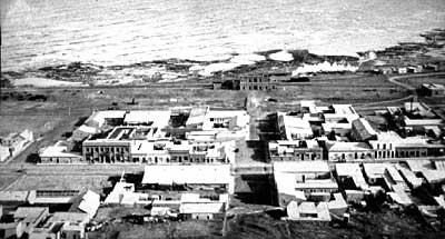 Found on FaceBook was this view of bales of wool stacked sky-high and covered with tarpaulins in the shadow of Cerro Chenque, awaiting a steamer to take them north.