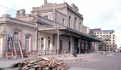 The station building, seen above next to the sea at the foot of the street in front of the camera, is shown in close-up below.