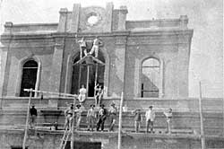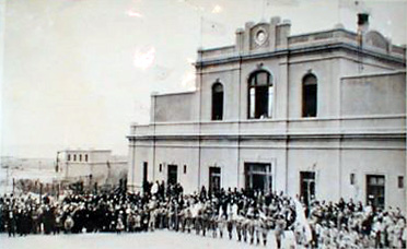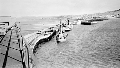 Archive photos are set out geographically from the coast up to Las Heras, followed by modern pictures laid out in the same way. Anyone interested in old photos of Comodoro Rivadavia should also visit Miguel Fiordelli's website. A number of his photos are of railway interest and almost all can be viewed in larger sizes by clicking on the thumbnail pictures. Archive pictures A very early photo, possibly taken from the Maciel muelle, and showing materials being unloaded. The railway track is on the right behind the horse-drawn carts, and a loco and van is in thre far distance.