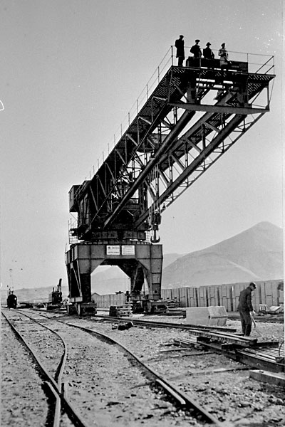 The big hammerhead or titan crane and two small steam cranes. The location seems to be out at the end of the muelle and the 75cm track on which crane ran clearly terminates here. (4)