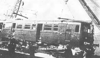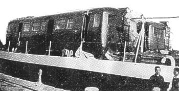 Drewry coche motor CM422 at a landslip on the coastal section immediately north of Comodoro station.