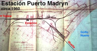 Sources of traffic There were also sources of minerals to provide loads for the trains. Boca de la Zanja, Campamento Villegas and Las Chapas all had kaolin (china clay) pits alongside the railway. In the 1950s this was the most profitable traffic left to the railway. There were also limestone deposits near of Campamento Villegas. A 1957 report by the Puerto Madryn Traffic Superintendent also talks wistfully of further mineral deposits near Las Chapas, and hopes that they might be exploited to the benefit of the railway. The plans to extend towards the cordillera had looked forwards to trade between the coast and the cooler more fertile mountain valleys, but obviously that did not materialise. In the circumstances it is unlikely that the nationalised line satisfied the local populace any more than had the British owned railway. Timetables April 1942 public timetable January 1946 itinerario (working timetable) November 1955 public timetable Operating details The best source of less formal operational detail is the 1989 book of anecdotes by ex-railwaymen published under the title of Los Ferroviarios que perdimos el Tren (2). However, such snippets do not lend themselves to systematic analysis. Here follow a few oddments: Trains bound for Puerto Madryn from Trelew would sometimes have a banking engine attached at the rear for the first 7 or 13km depending on the load. This would uncouple without notice, presumably by the fireman releasing the front coupling from the running board. Whilst passenger trains ran only as far as Rawson on the branch during winter, in the summer months they were extended to Playa Unión. The weekend trains often loaded to 23 coaches. Track layouts The Puerto Madryn layout shows a number of loops at the station and the largest number of sidings on the approach to the muelle as one might expect. The loco depot has a turntable but there is also a triangle. There are several private sidings. It seems that points/switches were normally set such that a runaway approaching from the south would be diverted safely rather than colliding with other stock or over-running onto the muelle.