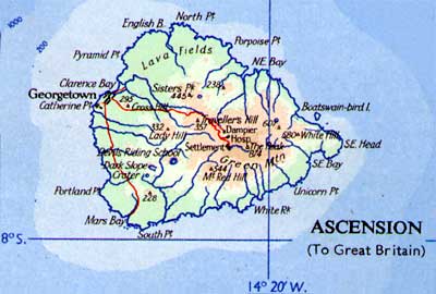 During the First World War a Marconi spark transmitter installation was built on the island east of Cross Hill. Messrs. (Holland, Hannen, and) Cubitts were the contractors just as on the Falklands. When the work was finished in 1915 there was correspondence about the disposal of the contractor's equipment (8). This apparently included four Foden steam lorries, and a light railway and trucks (but no mention of locos). The eventual conclusion was that one lorry would be retained on the island but the other three would be sent home. Nobody seemed to want the railway and it was to be offered to Marconi's if they could use it. Whilst no details were given it seems likely that it consisted of 'Jubilee' type track and four wheeled skip wagons. In 1923 a Mr. Sales formed the English Bay Company to extract guano (highly fertile deposits of bird dung) from a site of that name on the north side of the island. A camp grew up with a jetty, houses, barracks, stores and a hospital. There was a railway inland from the beach and apparently parts of the embankments can still be seen following the road from English Bay beach towards the power station. The route was on the left before the road joins the Power Station road, then following the current road alignment to the Klinker Club before curving off right through the BBC aerial field. Another separate section of track is supposed to have been laid at 'Ladies' Loo' near Porpoise Point. The company does not seem to have been a success, and by 1931 the site seems to have been dormant (9) Apart from the raised embankments there are sleepers and a wagon wheelset at 'Ladies' Loo' and the remains of 'an engine boiler' can apparently be seen at the beach car park. The rails seem to have been salvaged during the Second World War for other purposes and some still exist. It seems likely that the track and wagons came from the wireless station construction site, but no details of a locomotive have been discovered. Later, in the 1920s, guano was also exported from Boatswain Bird Island on the east coast. Jubilee track of 2 foot gauge was laid for the purpose (10). There was only hand power. This may have been by Charles Gleditz's Ascension Island Phosphate and Guano Co. Ltd. (11) or by the English Bay Co. mentioned above. The pier at Georgetown also had steam cranes until 1963. Three trolleys apparently survive on Ascension Island; one of them is still at 3' gauge, whilst the other two have been narrowed to 2'. There is also the chassis of a Ducroo & Brauns V-skip wagon (12). References: 19-8-11 |